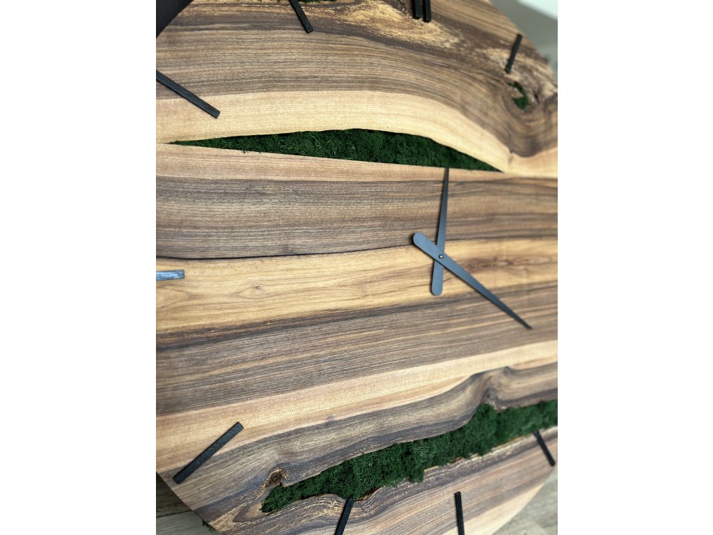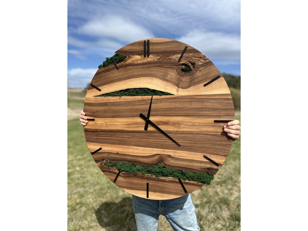 Ořechové hodiny s mechem | Originální design s kouskem přírody
