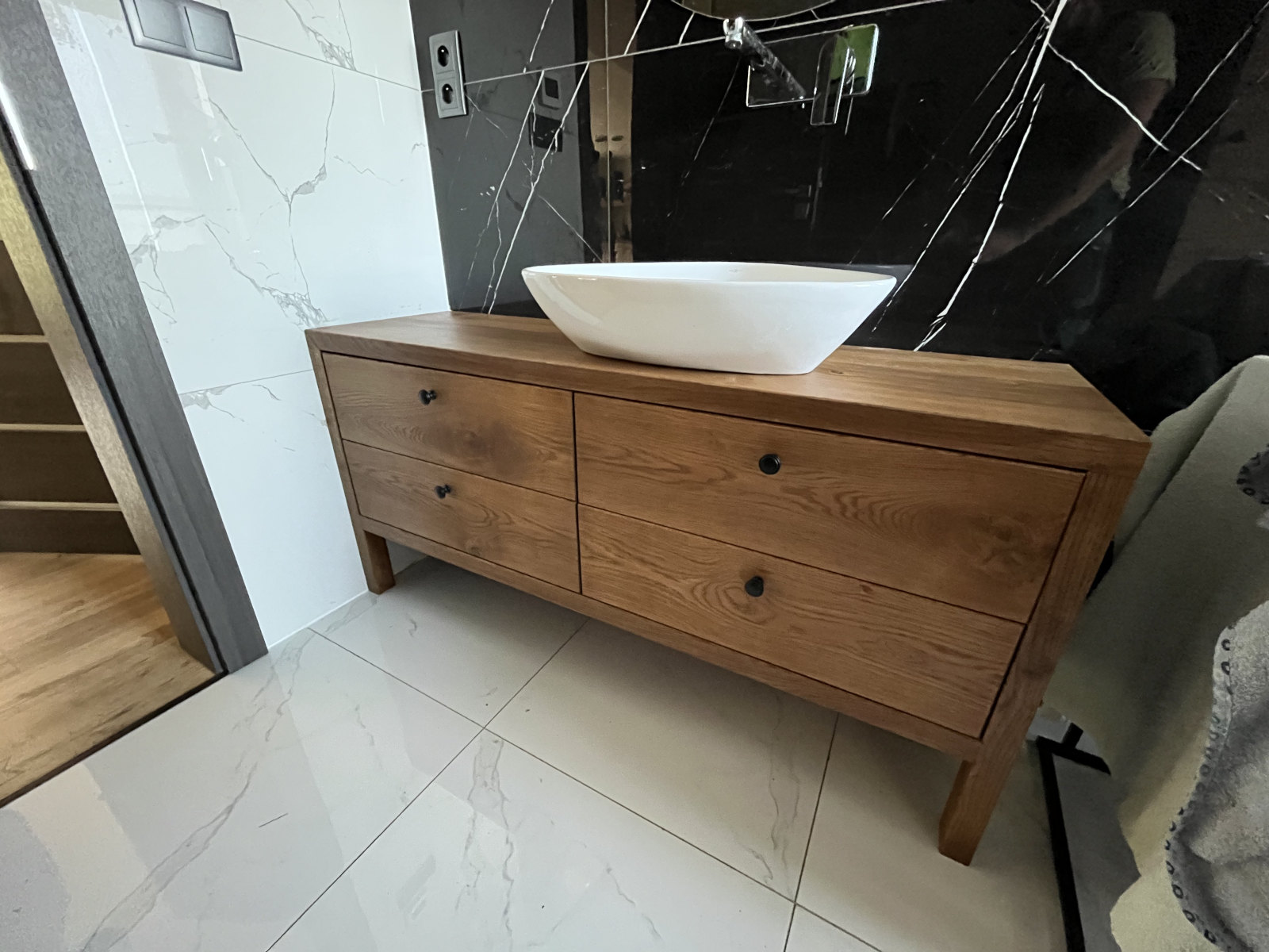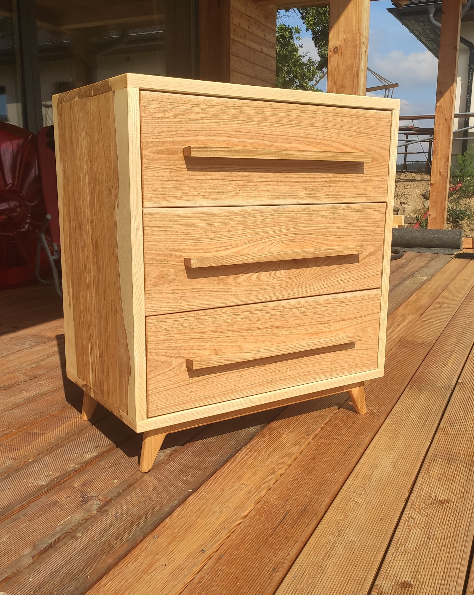 Zapomeňte na vrzající zásuvky a dřevotřísku, která se prohne pod tíhou ložního prádla. Dřevěná komoda z naší dílny je solitér, který udává tón celé místnosti.