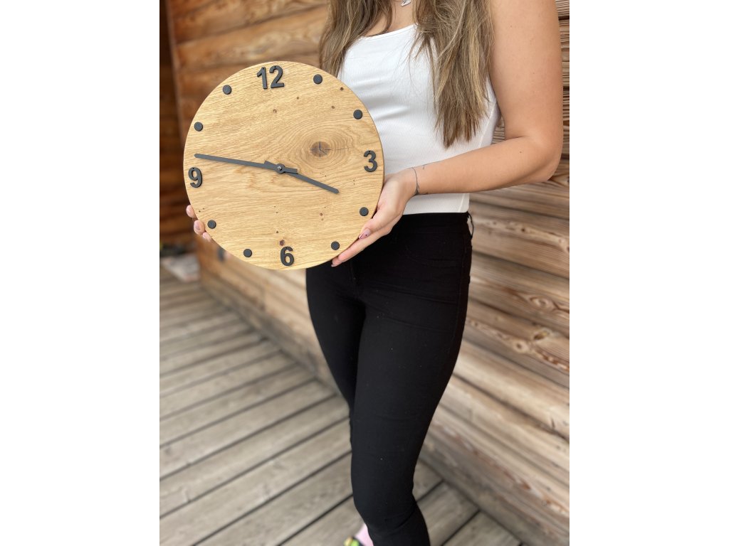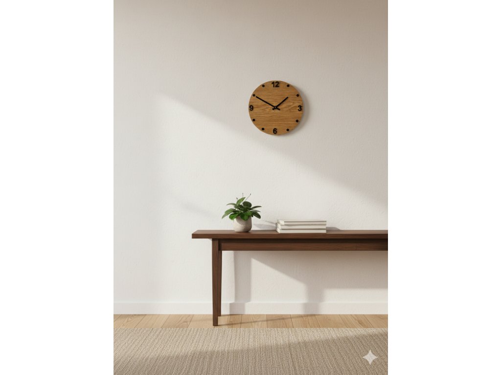 Dubové nástěnné hodiny | Minimalistický design s číslicemi