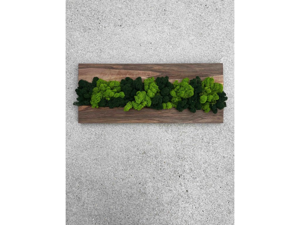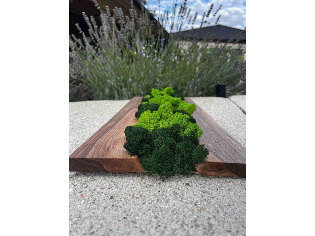 Dopřejte svému interiéru pravý luxus a dotek klidu. Náš mechový obraz představuje dokonalé spojení ušlechtilého ořechového dřeva a nadčasové svěžesti stabilizovaného finského lišejníku.