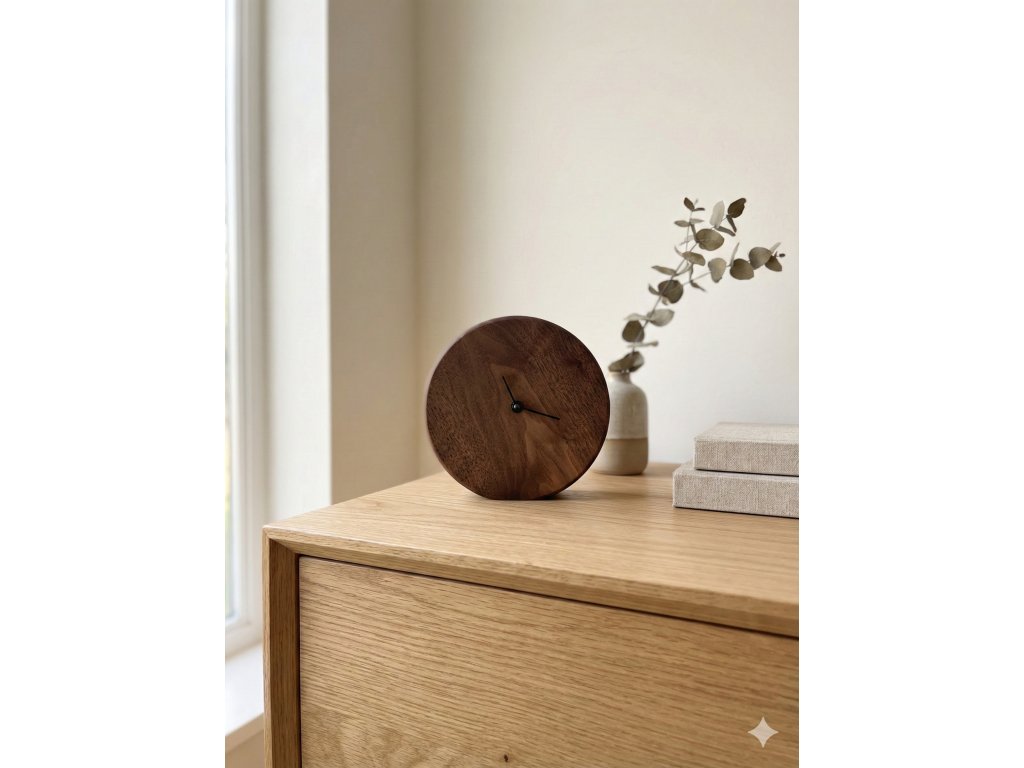 Ořechové stolní hodiny – Luxusní minimalismus z masivu